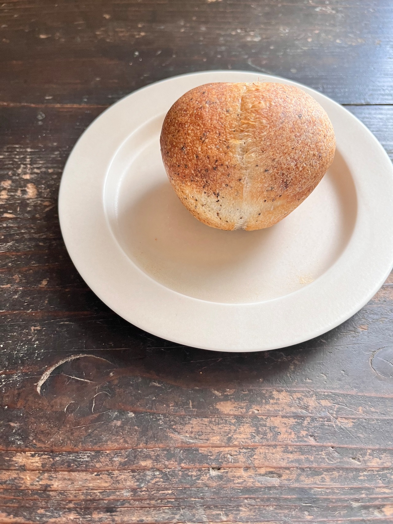 福岡県産の石臼挽き全粒粉・水・季節の素材を合わせ発酵させた酵母種と、国産小麦・きび砂糖・天日塩を合わせ、ていねいに焼きあげました
